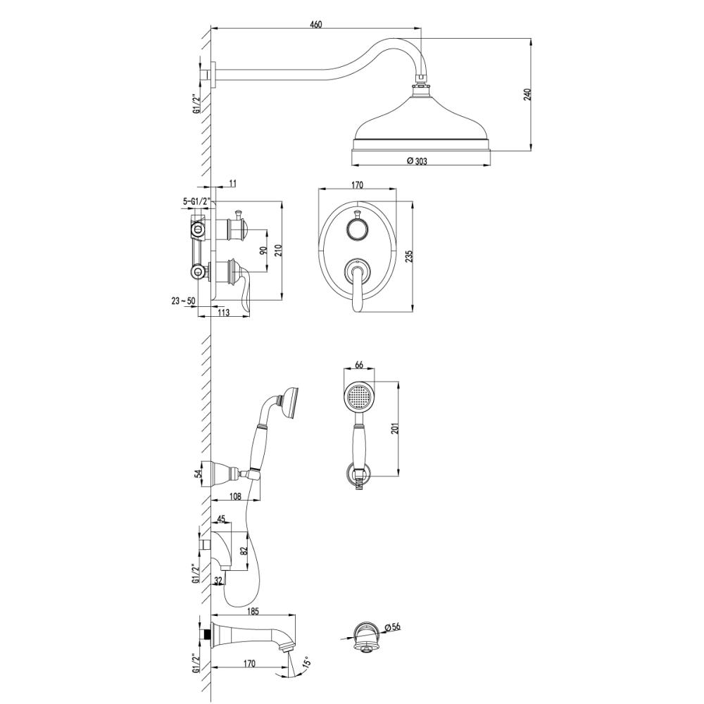 - Верхняя поворотная душевая лейка «Тропический дождь» Ø303 мм