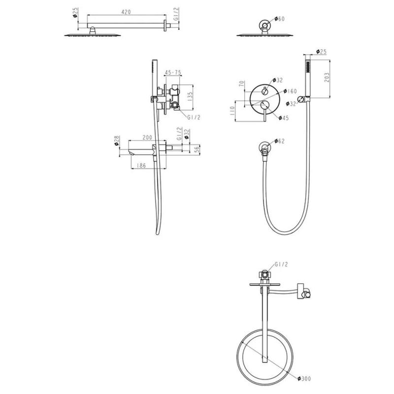 Данный товар подойдет вам, если вы ищете смеситель для ванны и душа, душевой гарнитур, душевую систему, душевой комплект, душевую стойку, тропический душ со смесителем, душевую стойку со смесителем, встраиваемый комплект для душа, тропический душ комплект.