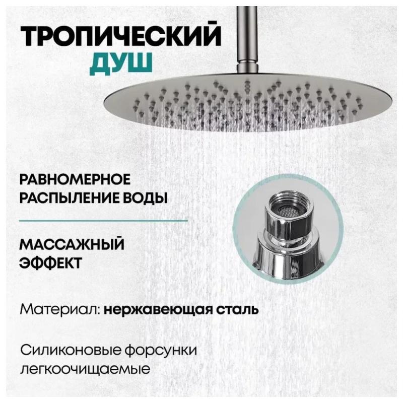 Данный товар подойдет вам, если вы ищете смеситель для ванны и душа, душевой гарнитур, душевую систему, душевой комплект, душевую стойку, тропический душ со смесителем, душевую стойку со смесителем, встраиваемый комплект для душа, тропический душ комплект.