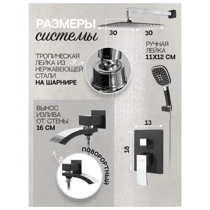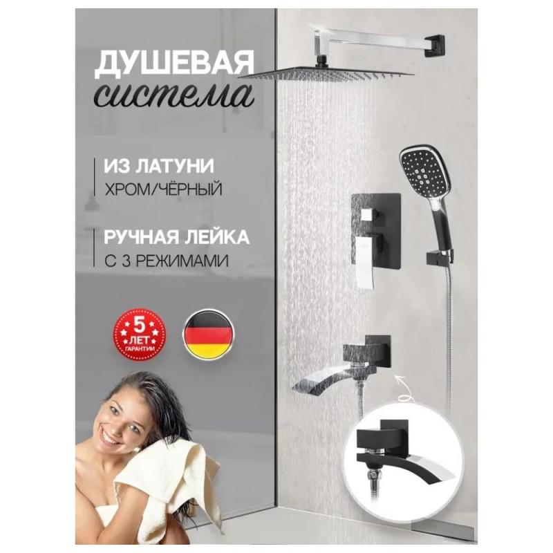 Душевая система встраиваемая Hansberge H6077BC, черный/хром