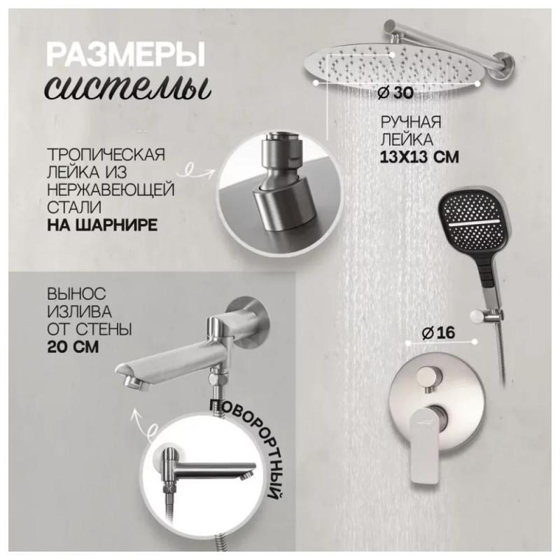 Данный товар подойдет вам, если вы ищете встраиваемый смеситель для ванны и душа, встраиваемый душевой гарнитур, встраиваемую душевую систему, встраиваемый душевой комплект, тропический душ со смесителем, встраиваемый душ со смесителем, тропический душ комплект, встраиваемый комплект для душа, встраиваемый смеситель с лейкой и душем, встраиваемый душ со смесителем, встраиваемый душевой набор.