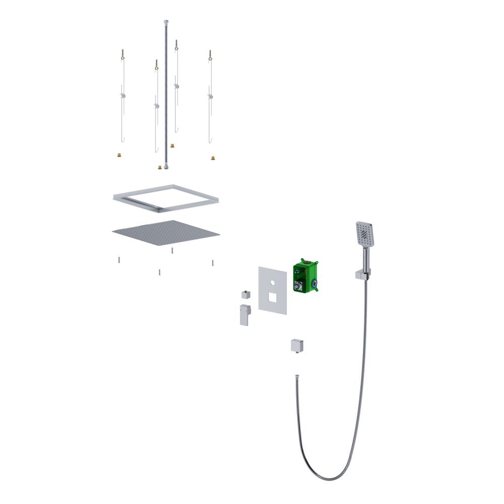 Смеситель с монтажной коробкой, скрытого монтажа - 1 шт.Ручная лейка 3-х режимная (пластик) - 1 шт.Держатель ручной лейки (пластик) - 1 шт.Декоративная накладка смесителя (латунная) - 1 шт.Ручка дивертора - 1 шт.Шланг душа 1,5 м (латунный) - 1 шт.Отвод из стены - 1 шт.Тропический душ, потолочный 400*400 мм (латунный) с установочной коробкой - 1 шт.Подвесные кронштейны (комплект) - 1 шт.Подводка к тропической лейке 1 м - 1 шт.Инструкция - 1 шт.