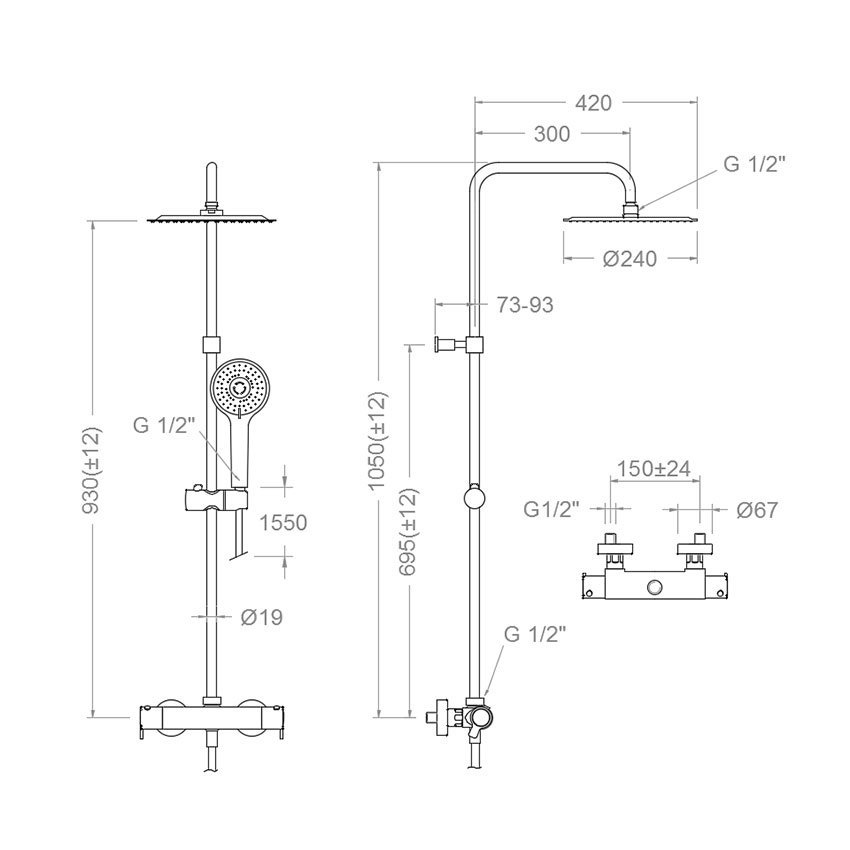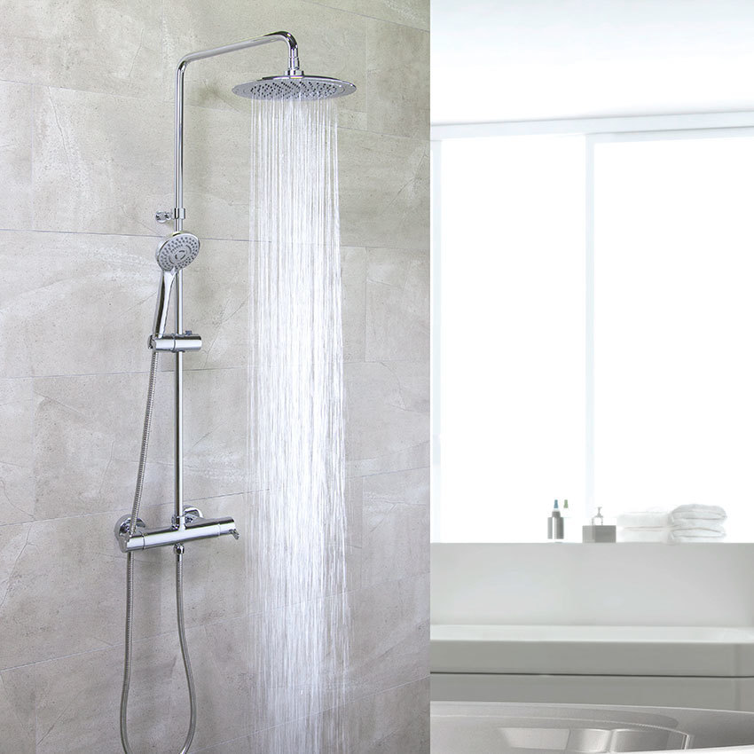 Душевая термостатическая система наружнего монтажа с телескопическим тропическим душем и душевым комплектом из ABS-пластика BLAUTHERM 9448RP240 Ramon Soler