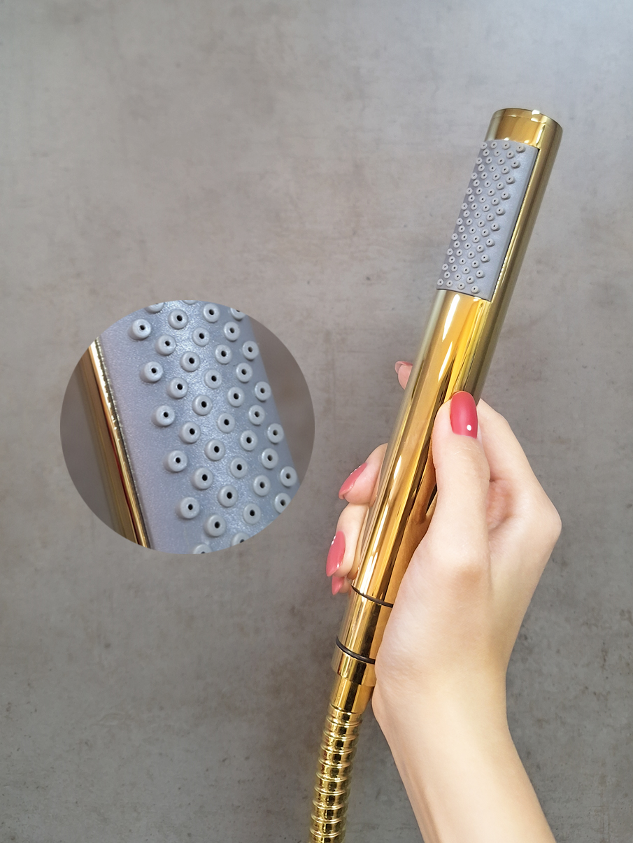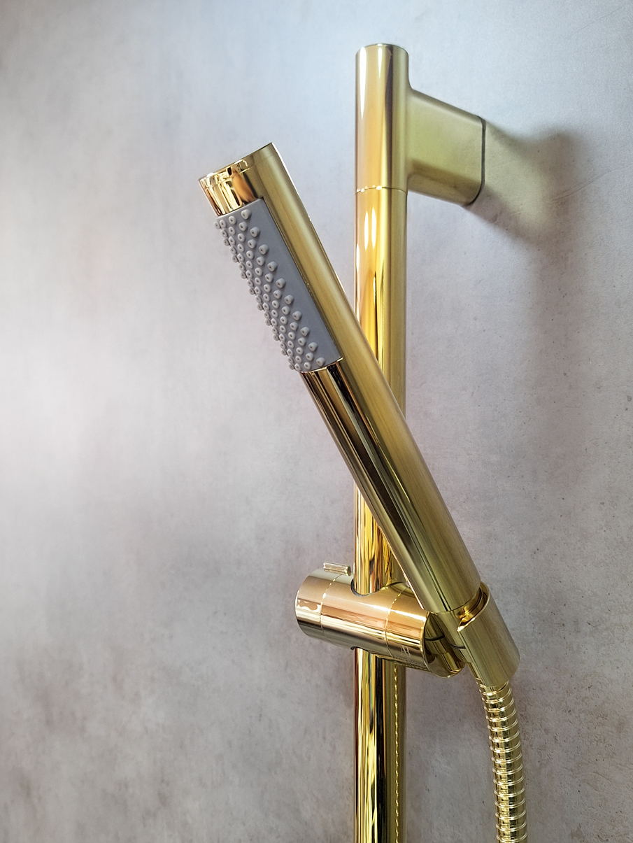 Дополнительные свойства: PVD - покрытие, душевая штанга, держатель ручного душа, ручной душ, гибкий металлический шланг, установочный комплект Комплектация: душевая штанга, держатель ручного душа, ручной душ, гибкий металлически шланг, установочный комплект