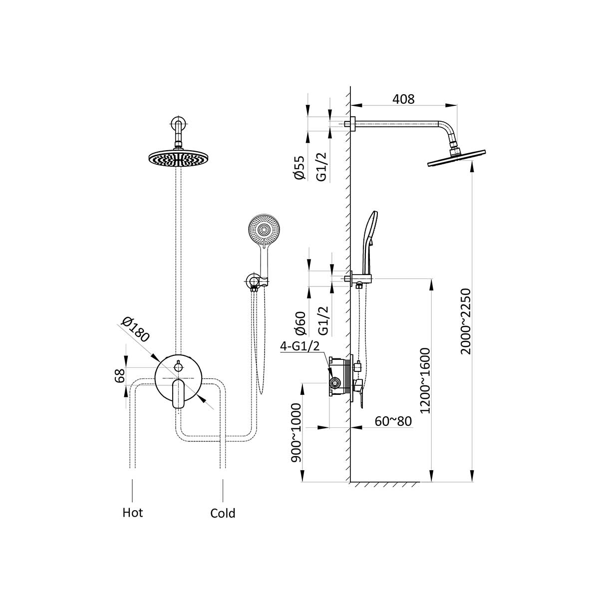 - Состав комплекта: Верхний душ, ручной душ, смеситель со встраиваемой частью