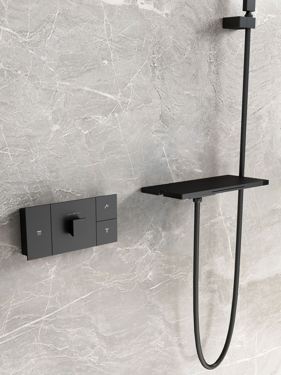 Душевой комплект Futura VSFW-2F11TMB термостатический встраиваемый, 3 режима, черный Vincea