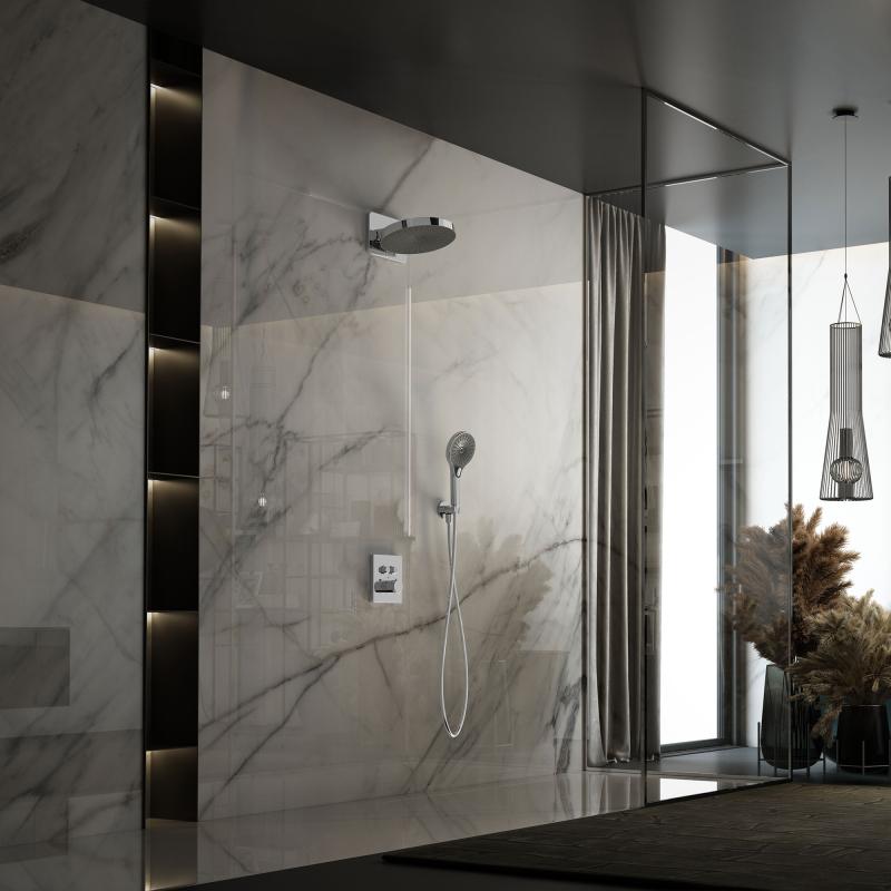 - Материал ручного душа - ABS, материал верхего душа - латунь/ABS