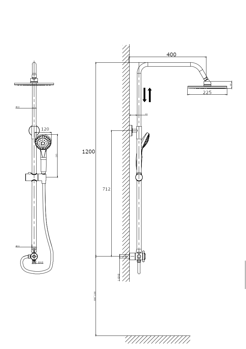 душевая штанга раздвижная, душевая лейка, тропический душ, держатель душевой лейки поворотный, душевой шланг с латунными гайками, индивидуальный пакет, паспорт, гарантийный талон