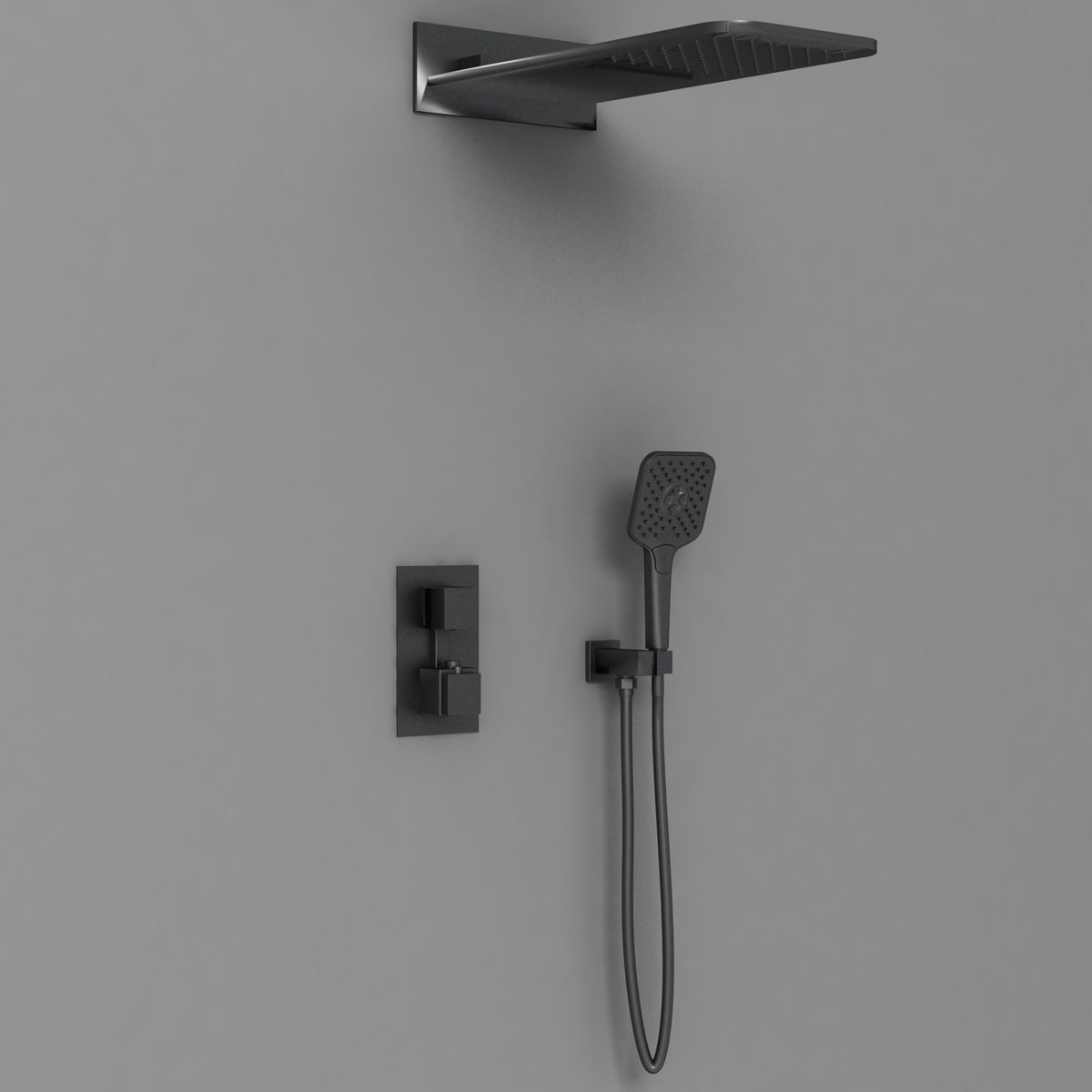 Душевой комплект VSFW-103TMB термостатический встраиваемый, двухрежимный, черный Vincea