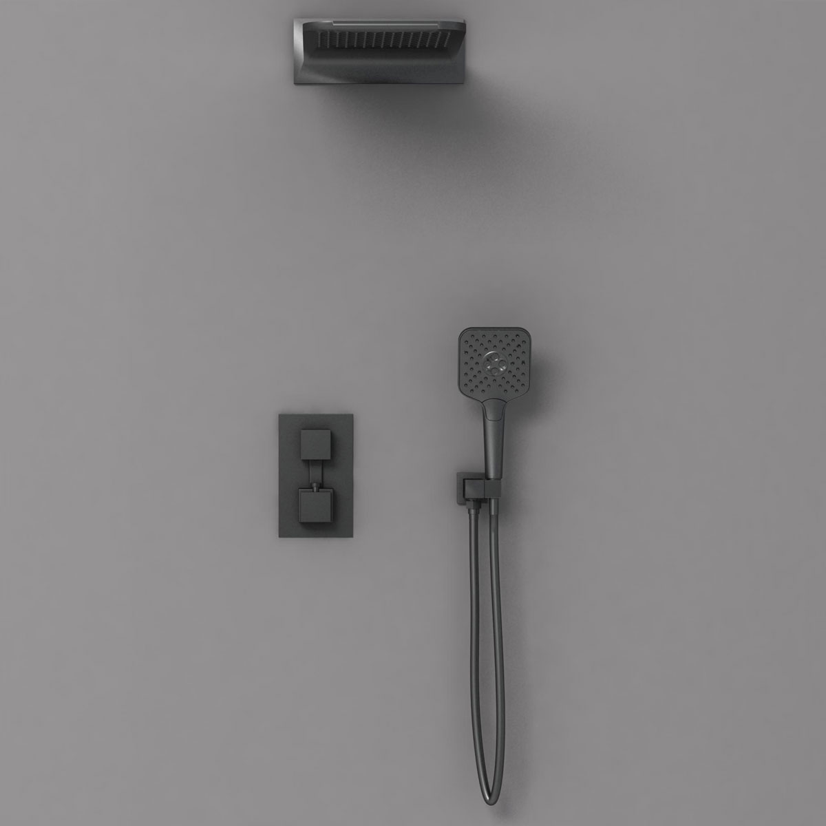 - Состав комплекта: Верхний душ, ручной душ, смеситель со встраиваемой частью