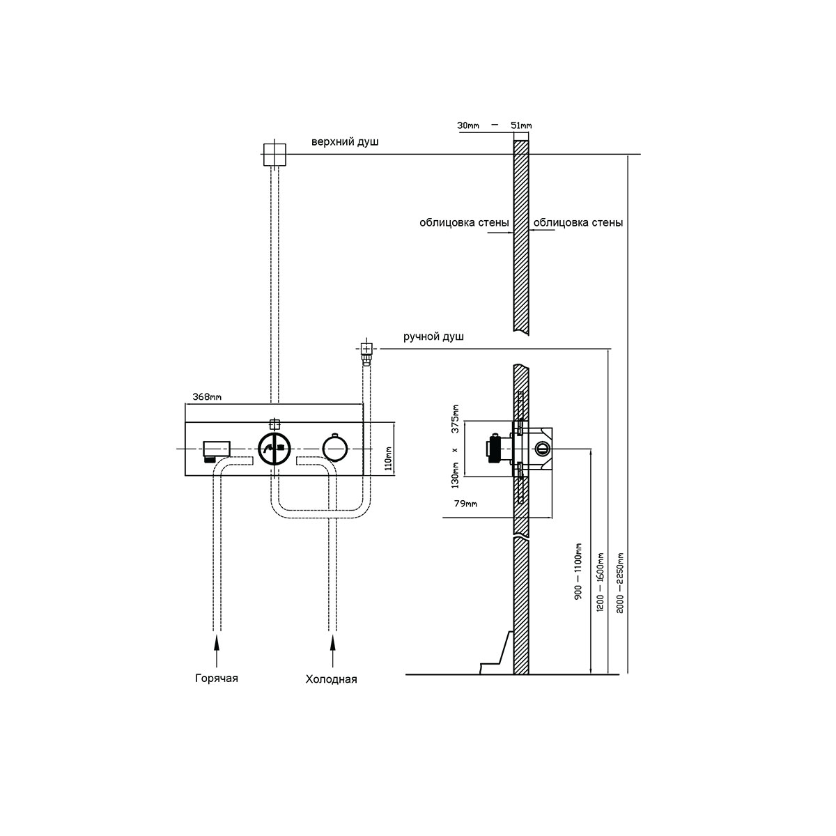 - Состав комплекта: Верхний душ, держатель ручного душа, ручной душ, встраиваемый смеситель