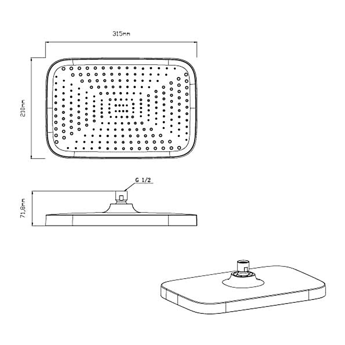 - Форма верхнего душа - прямоугольный, размер, мм - 315x210