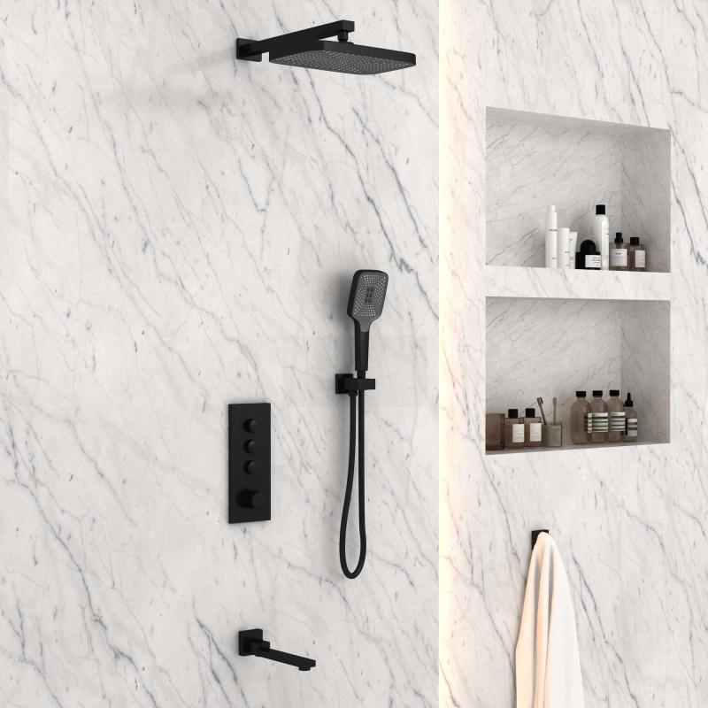 Душевой комплект VSFW-433T1MB встраиваемый, термостатический, 3 режима, черный Vincea