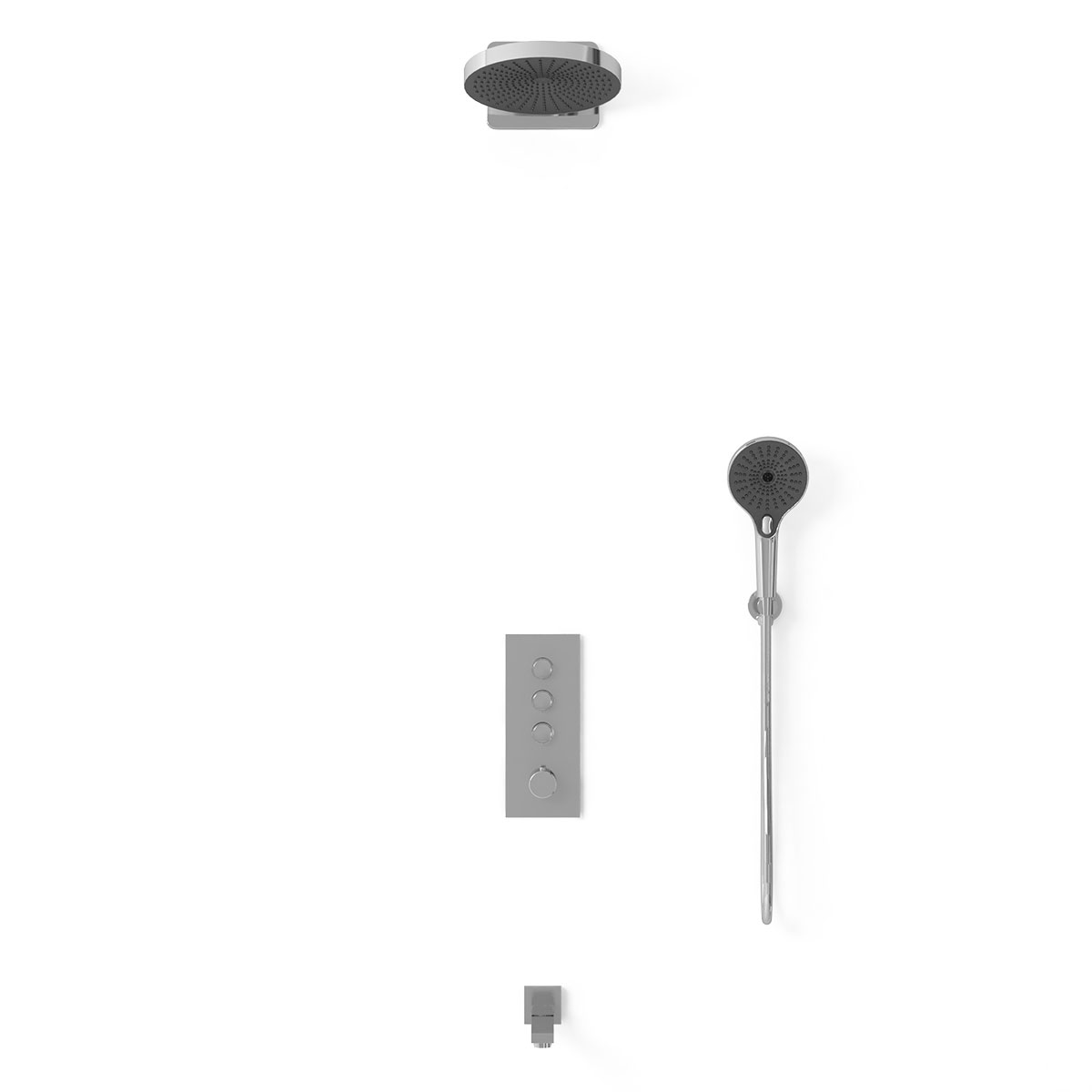 - Состав комплекта: Верхний душ, держатель ручного душа, ручной душ, встраиваемый смеситель,излив