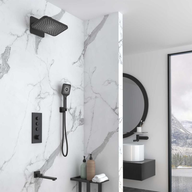 Душевой комплект VSFW-433TI4MB встраиваемый, термостатический, трехрежимный, черный Vincea