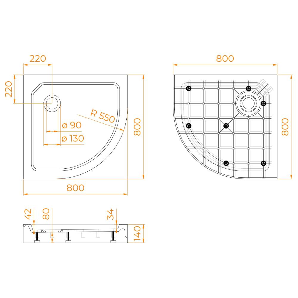 - Габариты, мм (ШхГ) - 800x800