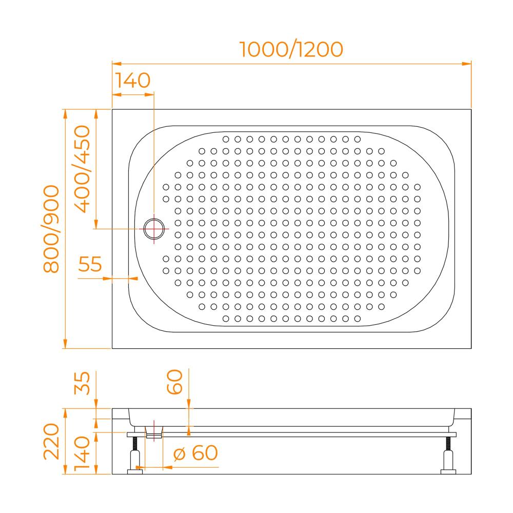 Душевой поддон прямоугольный RGW LUX/TN 900x1000