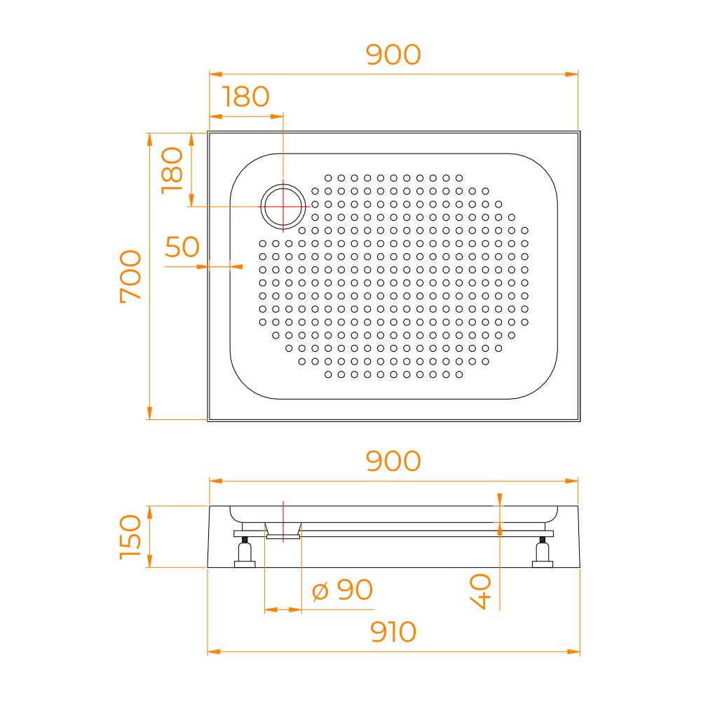 Душевой поддон прямоугольный RGW LUX/TN (Литой экран) 700x900 700x900