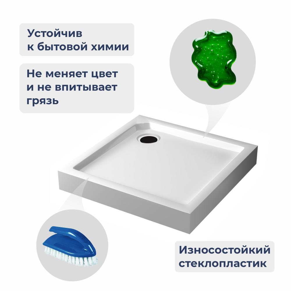 Этот материал прочнее акрила, а специальная структура волокон и конструкция поддонов способствуют высокой устойчивости к механическим и весовым нагрузкам до 180 кг, а также обеспечивает срок эксплуатации не менее 15 лет.