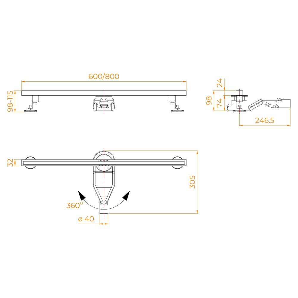 Две усиленные опоры из нержавеющей стали с регулировкой высоты