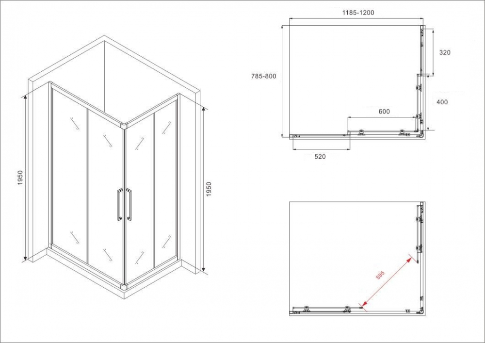 - Поддон приобретается отдельно (установка на поддон или на плитку)