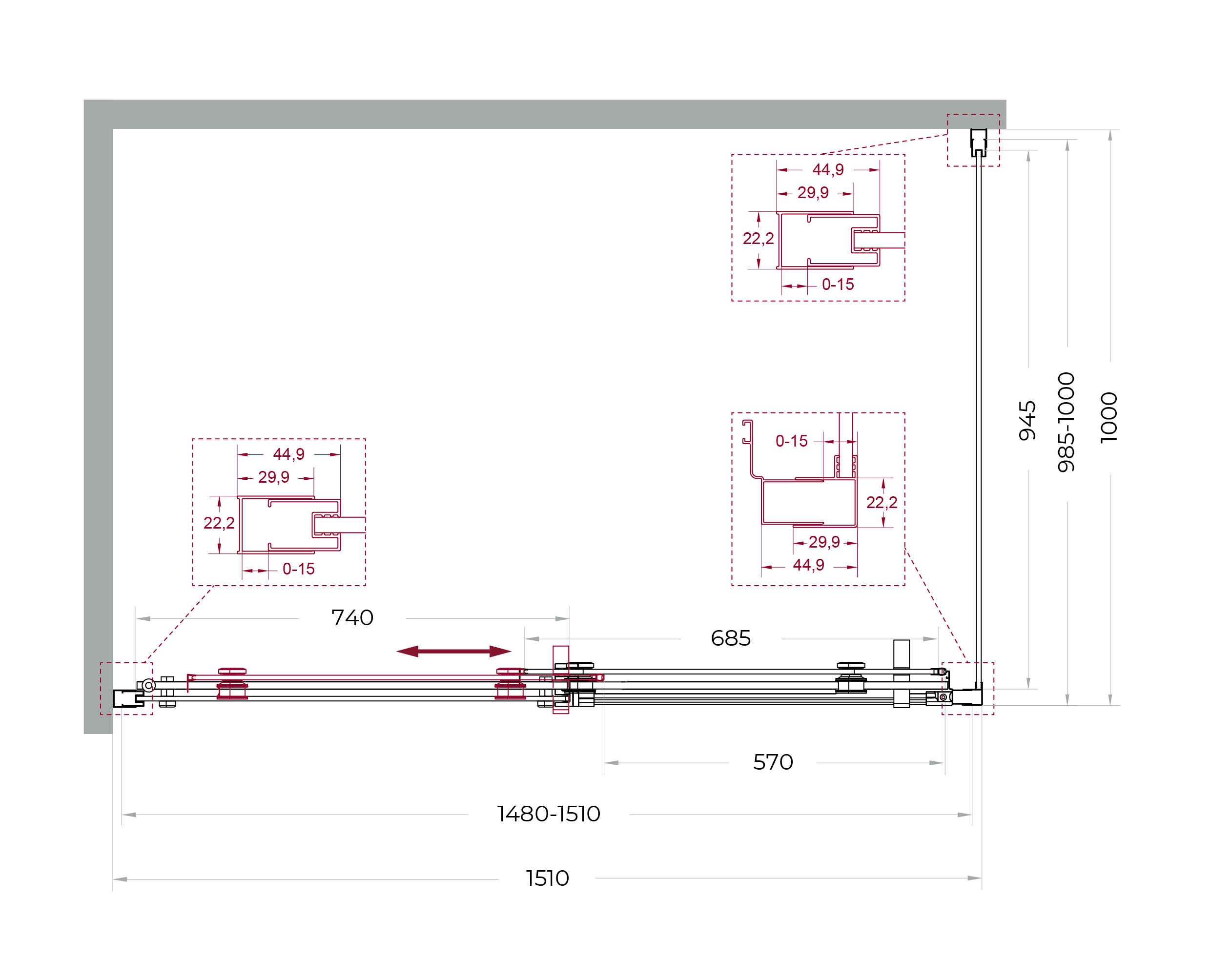 Раздвижные двери оборудованы одинарными роликами увеличенного диаметра, корпуса которых изготовлены из прочного сплава Zamak (цинко-алюминиево-магниево-медного состава) и нержавеющей стали. Такая комбинация материалов обеспечивает длительную и надежную эксплуатацию механизмов.
