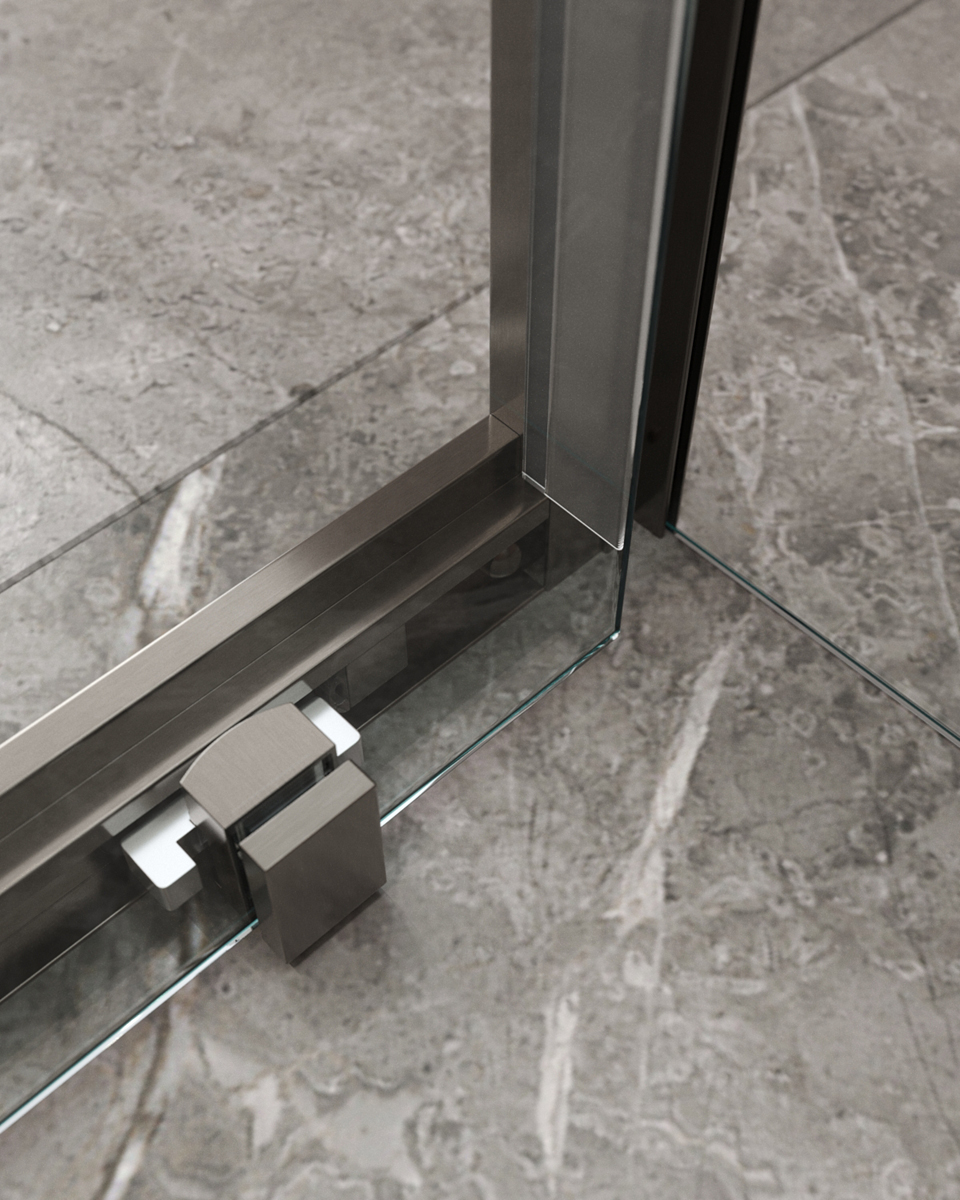 Профили изготовлены из авиационного алюминия, ручки и корпус роликов - из нержавеющей стали марки AISI 304. Ударопрочное стекло толщиной 6 мм обеспечит прочность и надежность.