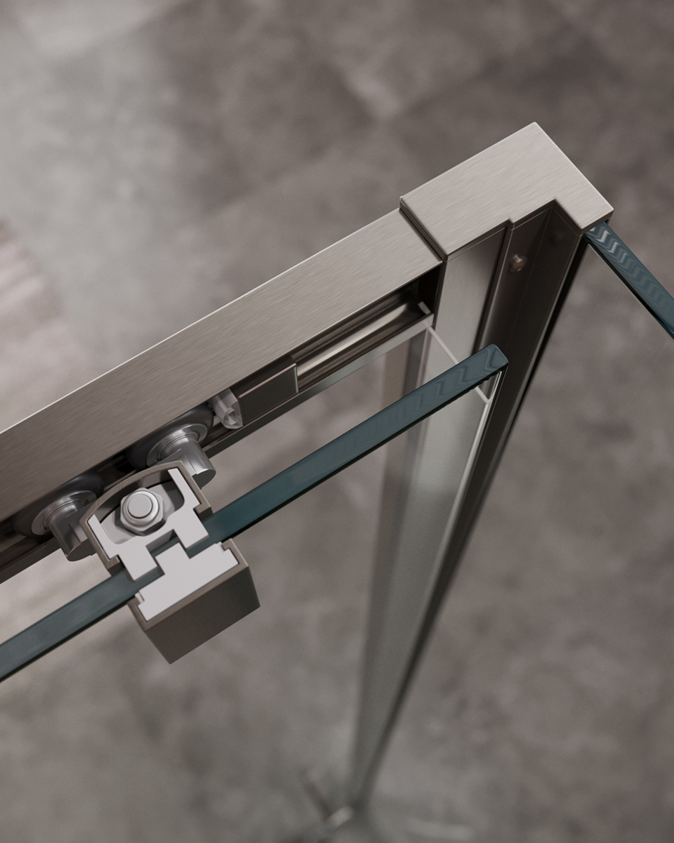 Профили изготовлены из авиационного алюминия, ручки и корпус роликов - из нержавеющей стали марки AISI 304. Ударопрочное стекло толщиной 6 мм обеспечит прочность и надежность.