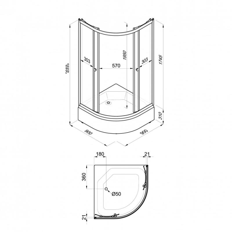 - Габариты, см (ДхШхВ) - 90х90х205,5