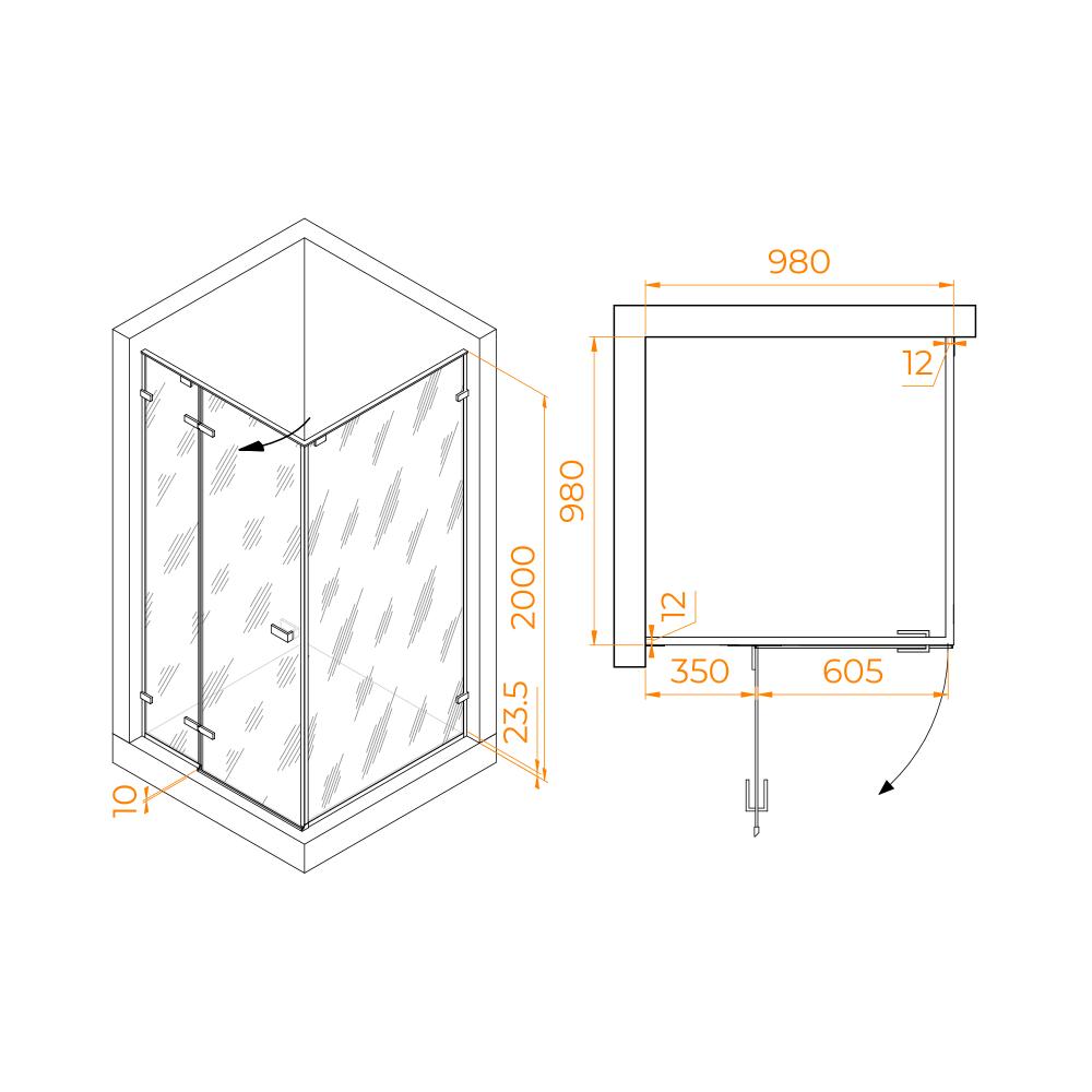 Душевой угол выполнен в актуальном стиле, модель сочетает в себе утончённый дизайн профиля и непревзойдённую геометрию фурнитуры в стиле хай-тек, идеально дополняя современную ванную комнату.