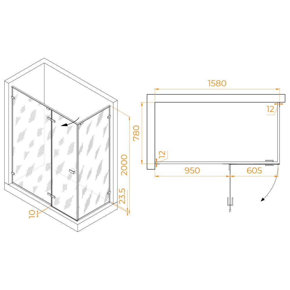 Душевой уголок RGW SV-040 1600x800, профиль хром, стекло прозрачное