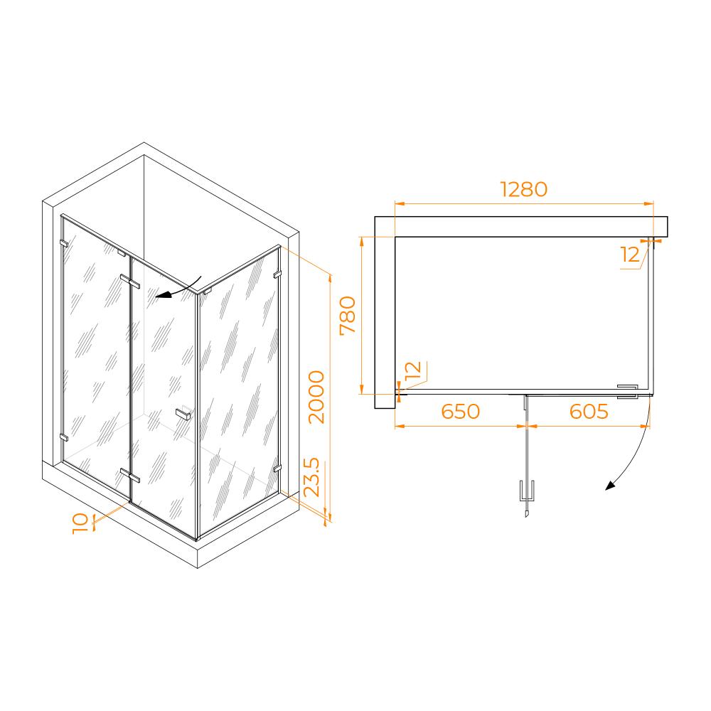 Душевой уголок RGW SV-040B 1300x800, профиль черный, стекло прозрачное