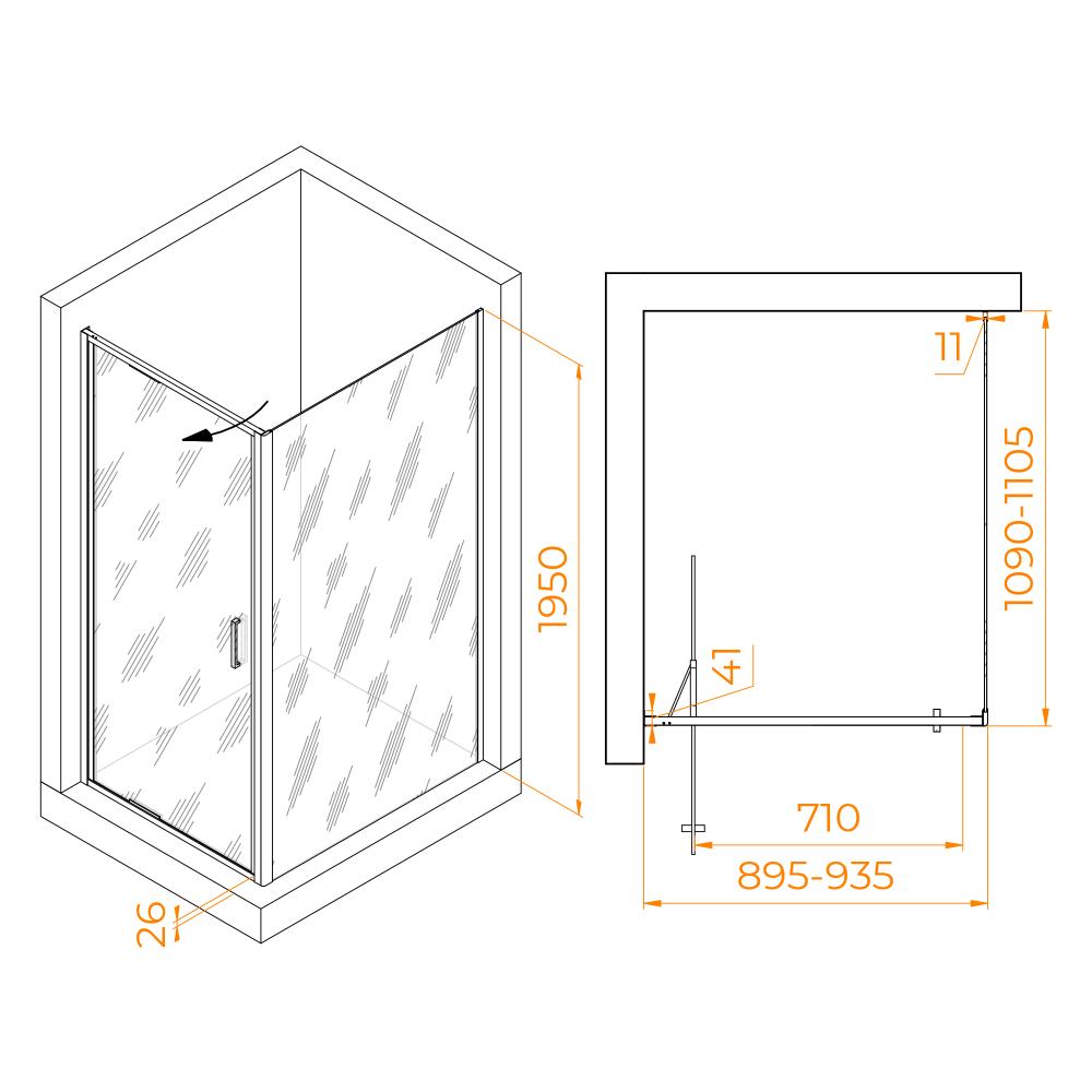 Душевой уголок RGW SV-145 900x1100, профиль хром, стекло прозрачное