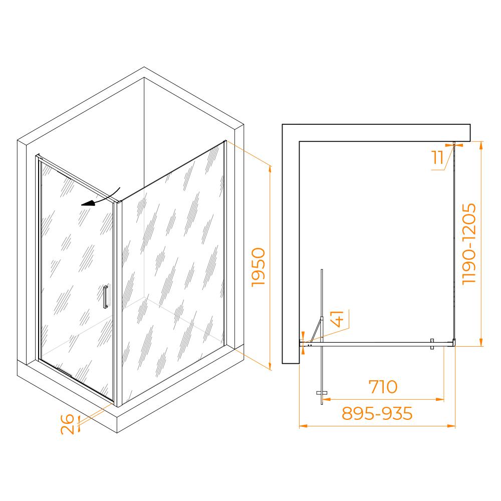 - Габариты, см (ШхГхВ) - 90х120х195- Размеры с диапазоном регулировок, мм - (895-935)x(1190-1205)