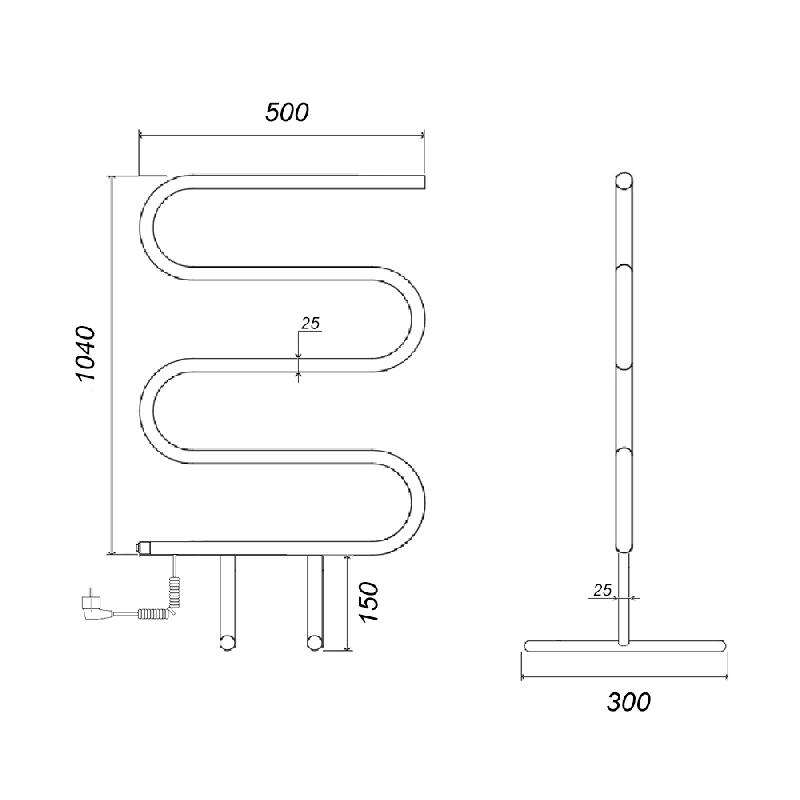 Электрический полотенцесушитель E-образный, напольный 500х1040 хром DMT 103-25 50x104 EK (напольный) Domoterm