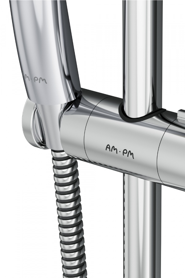 Продуманные детали для удобства использования: шарнирное соединение защищает душевой шланг от перекручивания регулируемый в трех плоскостях держатель ручного душа функция Rub&Clean для легкой очистки душевых форсунок.
