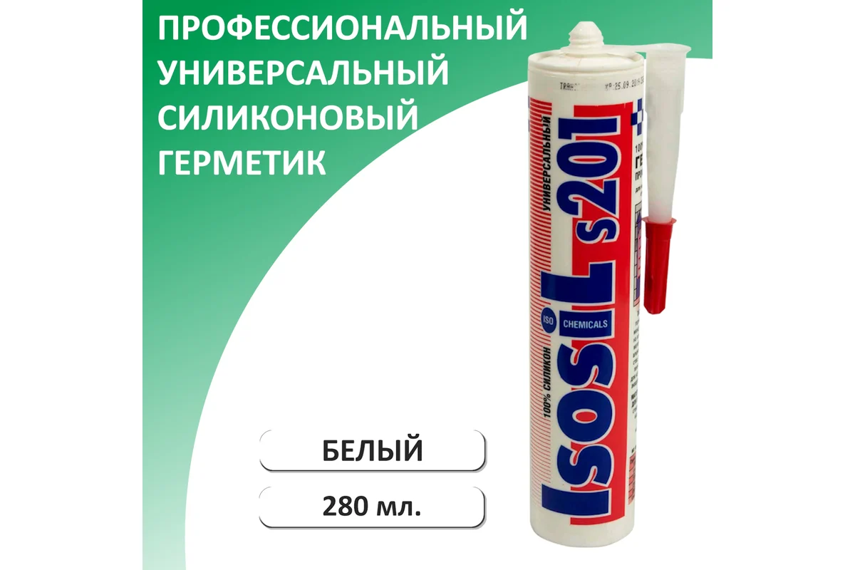 Герметик силиконовый универсальный Isosil S201, белый, 280 мл - герметик для широкого спектра строительных и отделочный работ. Применяются для герметизации стыков и швов. Рекомендуется использовать со стеклом, керамической плиткой, деревом, алюминием и другими коррозионностойкими материалами. Не рекомендуется наносить на щелочные и коррозионнонестойкие поверхности: бетоны, строительные растворы, медные сплавы, свинец, цинк.