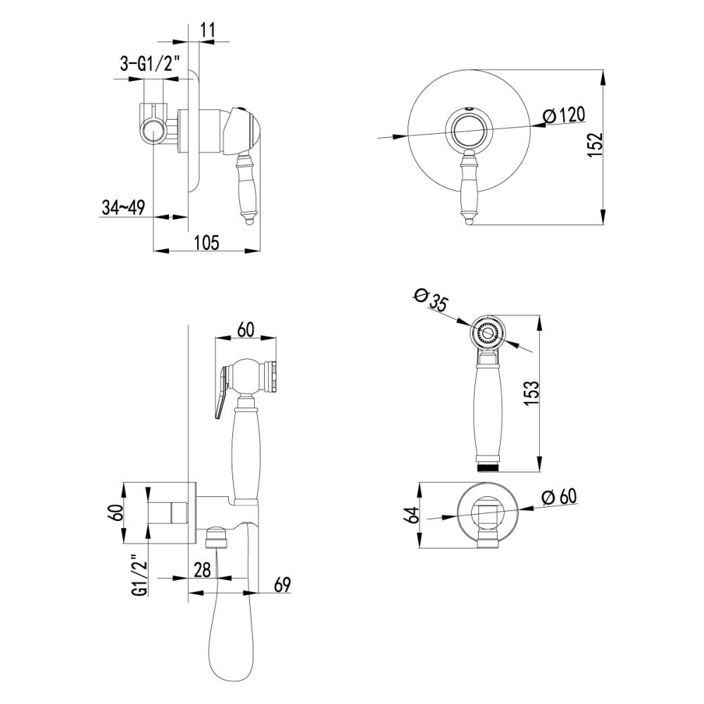 Аксессуары в комплекте: лейка для биде с нажимным механизмом, шланг 1,5 м
