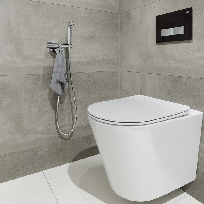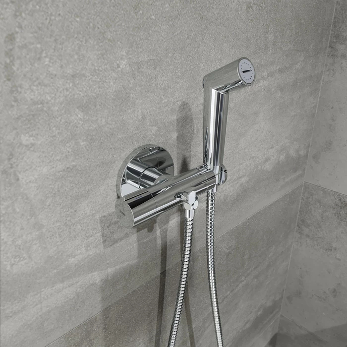 Смеситель из новой коллекции Axes отличается ультрамодным дизайном и продуманным конструктивом – гигиенический душ удобно ложится в руку, а эргономичная система управления, расположенная на держателе лейки, позволяет избежать случайной подачи воды после завершения использования смесителя. Смеситель запоминает комфортную температуру воды, благодаря этому гигиенические процедуры становятся еще более комфортными. Компактная лейка фиксируется непосредственно в самом смесителе, что экономит пространство, а скрытый монтаж в стену позволяет сохранить эстетичный внешний вид любого современного санузла. Гигиеническая лейка, крючок и душевой шланг (1,5) в металлической оплетке в комплекте.
