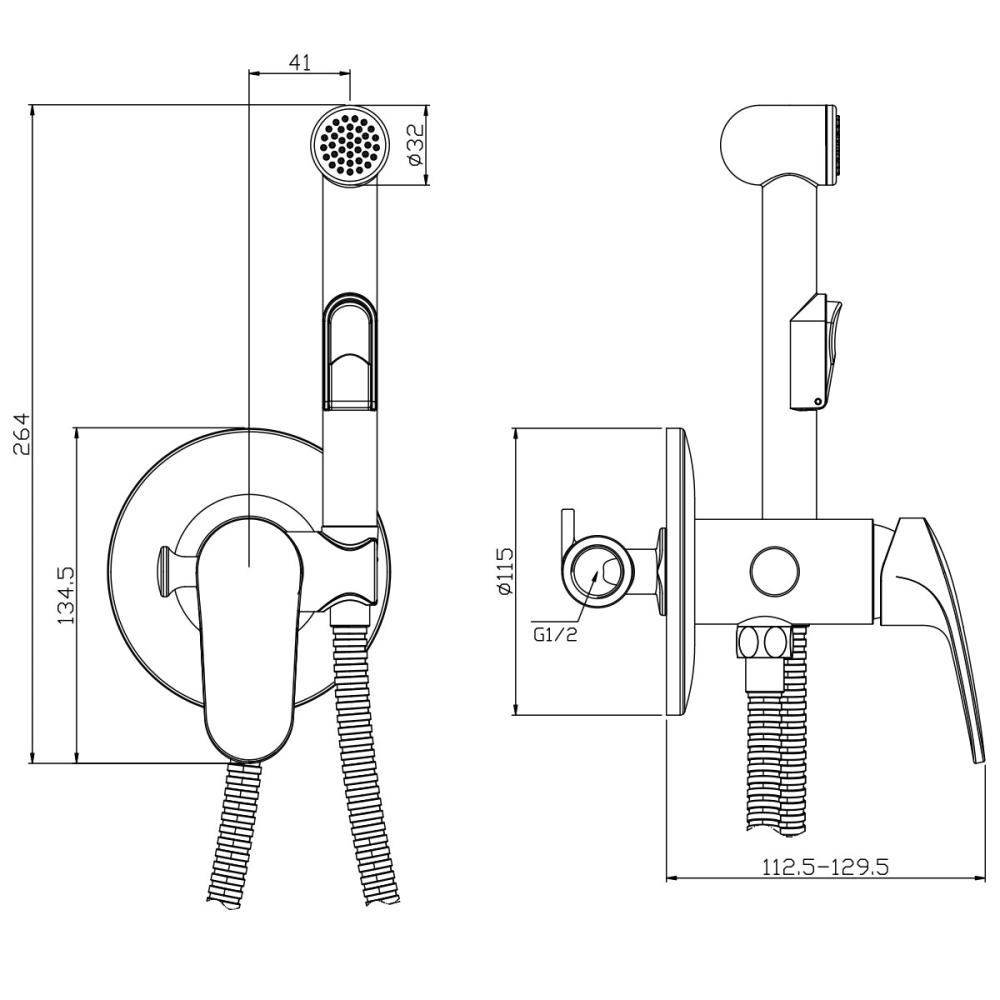 - Аксессуары в комплекте (шланг 1,2 м, лейка гигенического душа с нажимным механизмом с функцией легкой очистки)