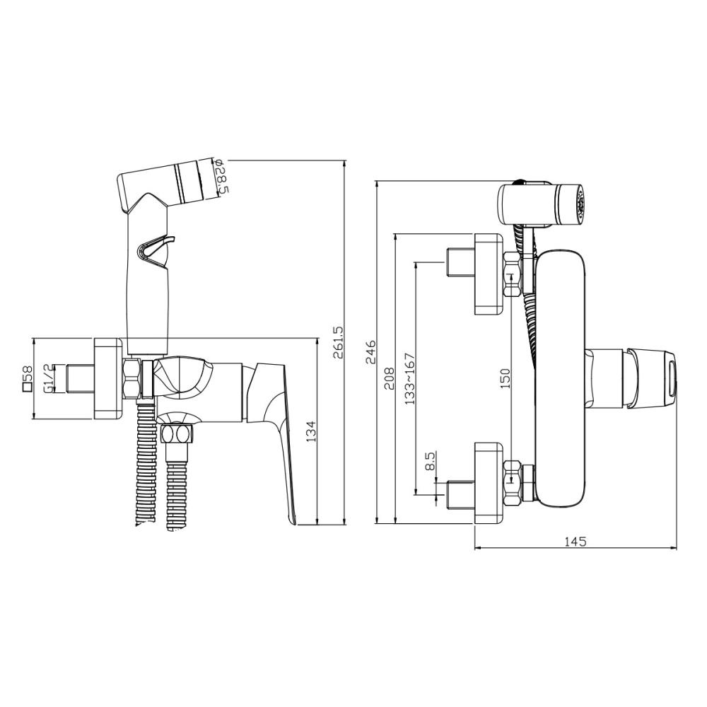 - Аксессуары в комплекте (шланг 1,2 м, лейка гигиенического душа с регулятором напора воды)