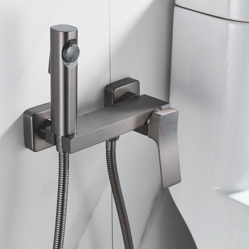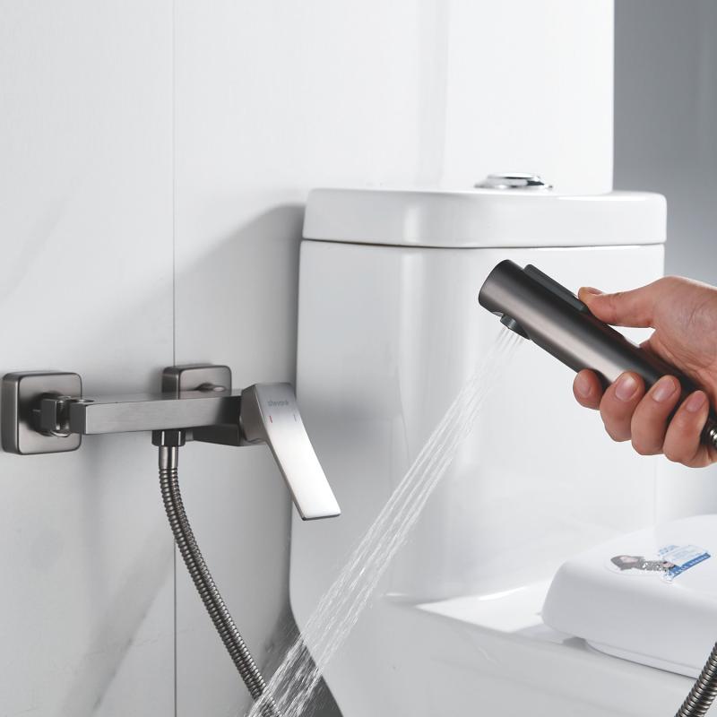 Гигиенический душ Shevanik со смесителем угловатой формы изготовлен из высококачественной латуни, обеспечивая прочность и долговечность. Уникальная конструкция корпуса смесителя выполнена в виде полочки для дополнительного удобства и хранения личных гигиенических принадлежностей.