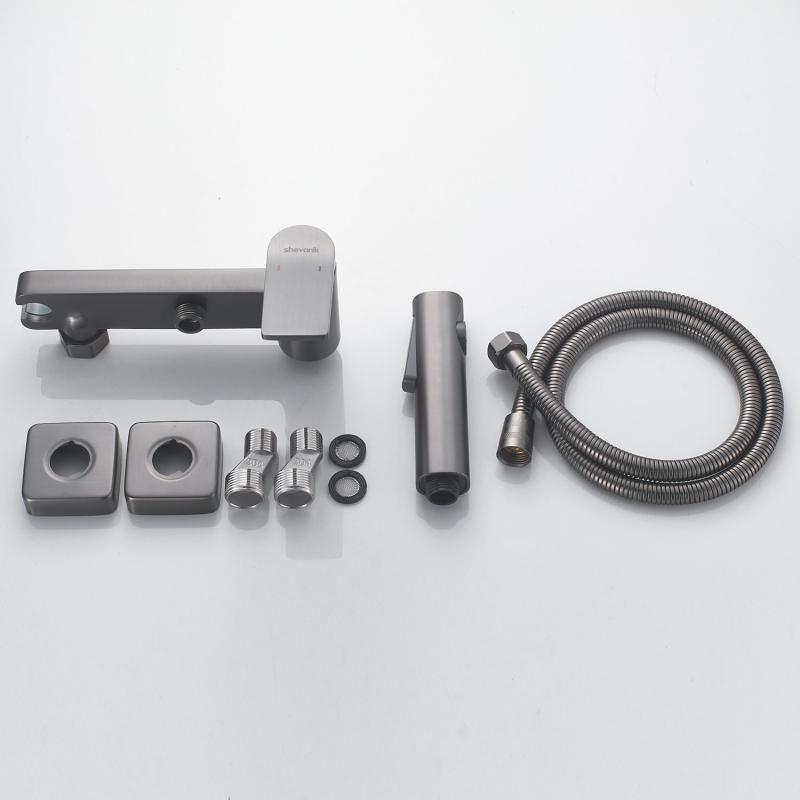 Гигиенический душ Shevanik со смесителем угловатой формы изготовлен из высококачественной латуни, обеспечивая прочность и долговечность. Уникальная конструкция корпуса смесителя выполнена в виде полочки для дополнительного удобства и хранения личных гигиенических принадлежностей.