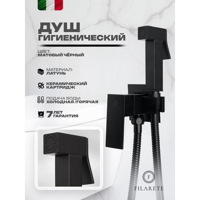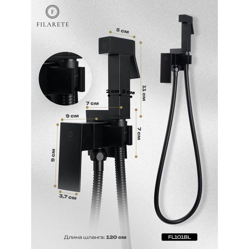Гигиенический душ со смесителем встраиваемый FILARETE Fing FL101BL, черный