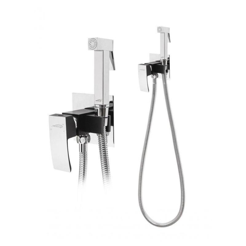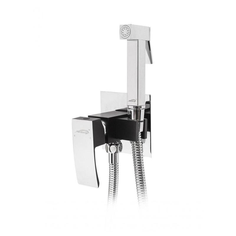 Смеситель встраиваемый с гигиеническим душем Hansberge H3077BC, хром/черный.