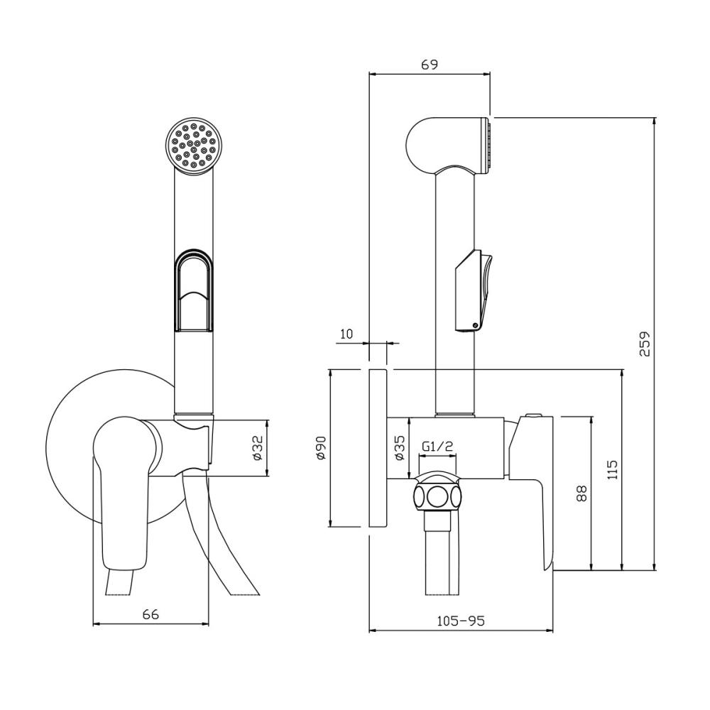 - Аксессуары в комплекте (шланг 1,2 м, лейка для биде с нажимным механизмом)