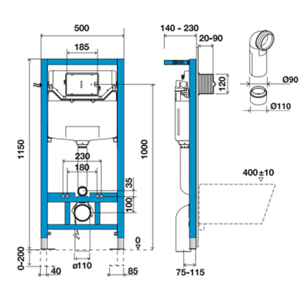 - инсталляционная система для подвесного унитаза с бачком, оснащенным механизмом двойного смыва на 3/6 л