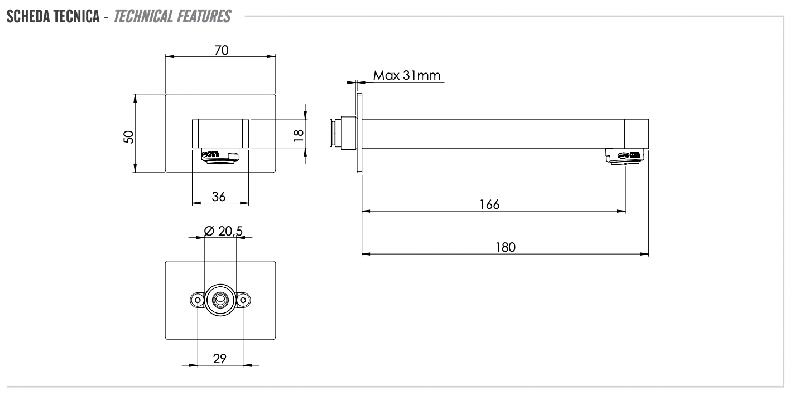 Излив настенный 18 см Remer Class Line 91LXV, сталь