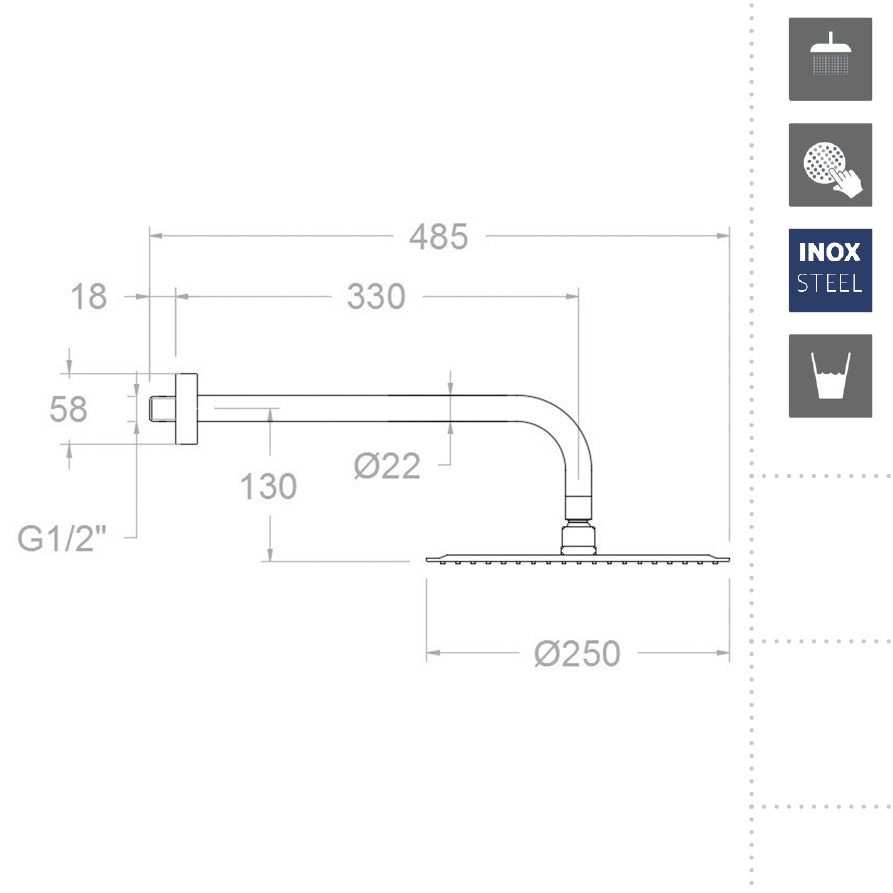 Излив тропического душа настенный круглый латунь HIDROTERAPIA BHRM250OC золото брашированное Ramon Soler