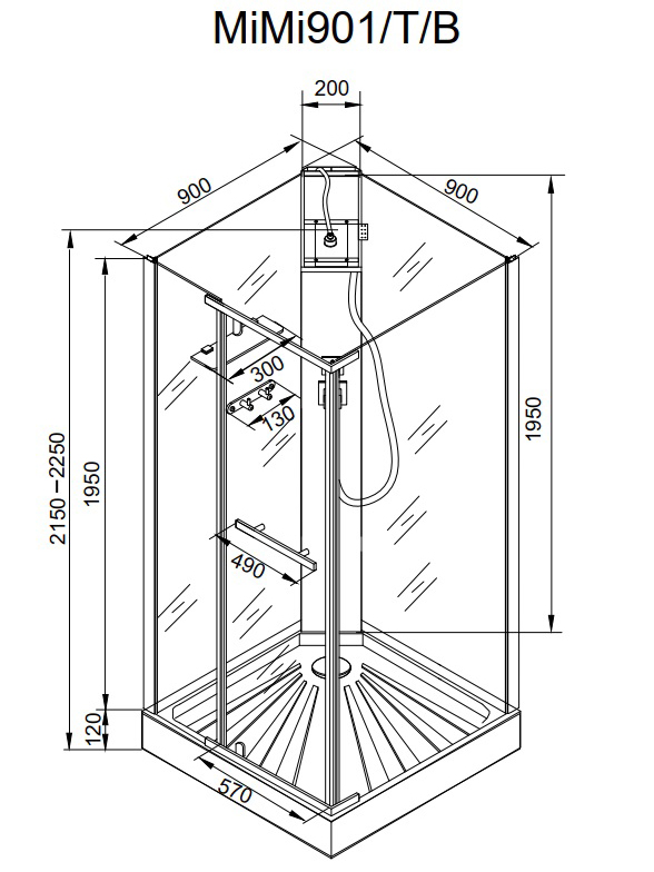 Кабина MiMi90T душевая Ceruttispa (90x90x215-225)